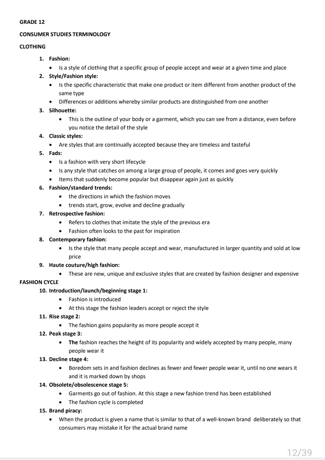 This document has summary covering the aspects and topics of Consumer studies like the requirements for a profitable business, dietary guidelines , marketing plan, food and nutrition and more. No exercises are provided.