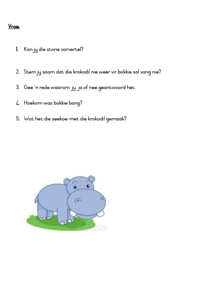 Dit is Graad 1 en Graad 2 Begripstoetse met vrae