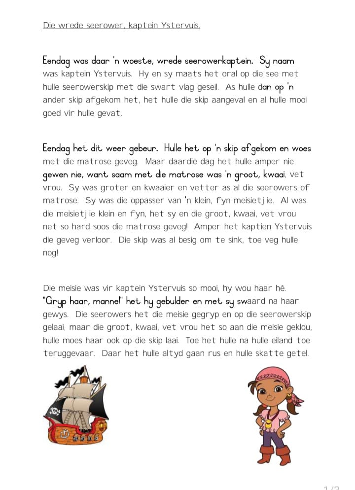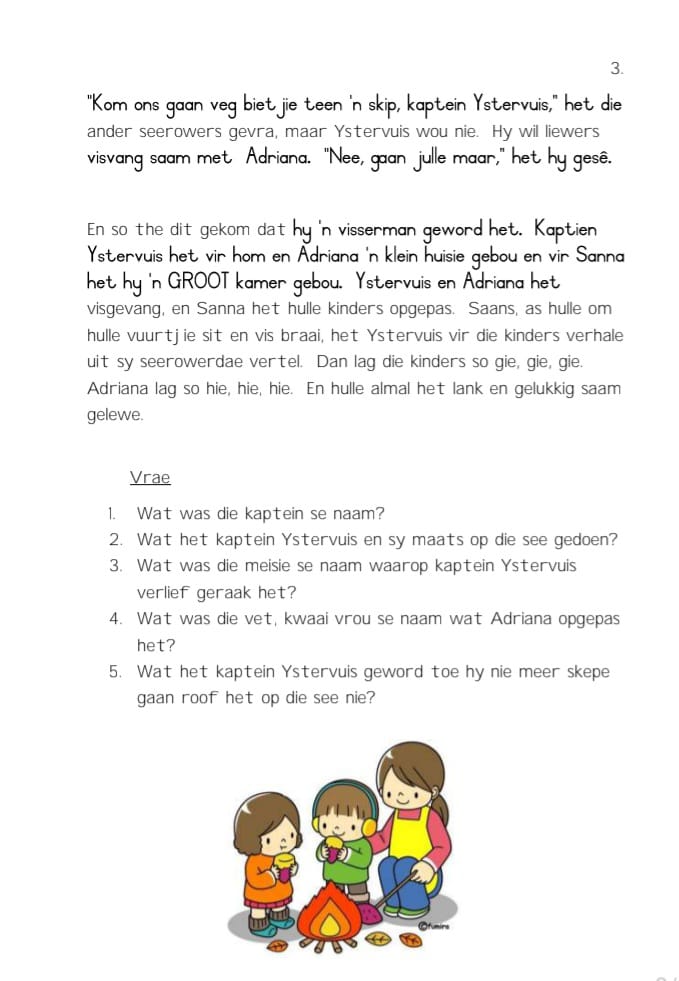 Graad 1 en 2 begripstoetse met vrae van die volgende stories :