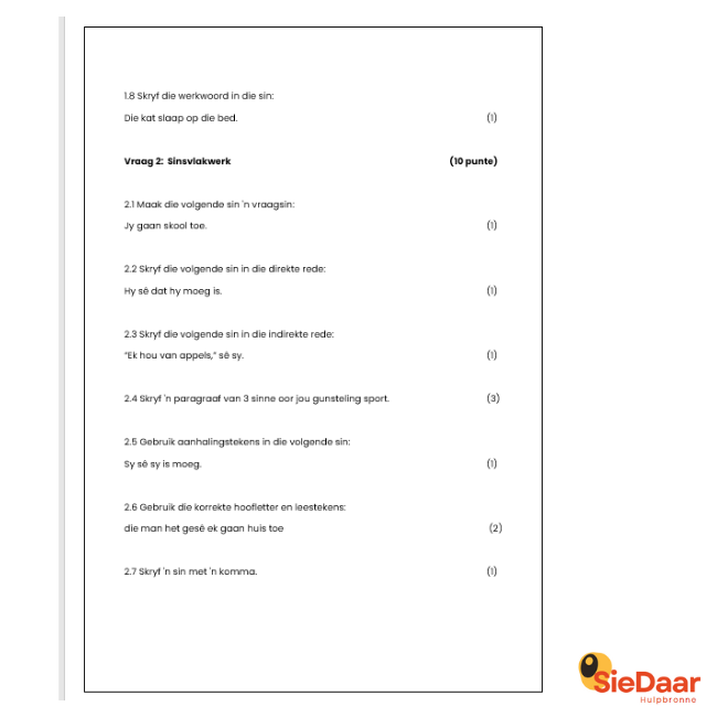 GRAAD 5 KWARTAAL 3 AFRIKAANS TOETS MET MEMO