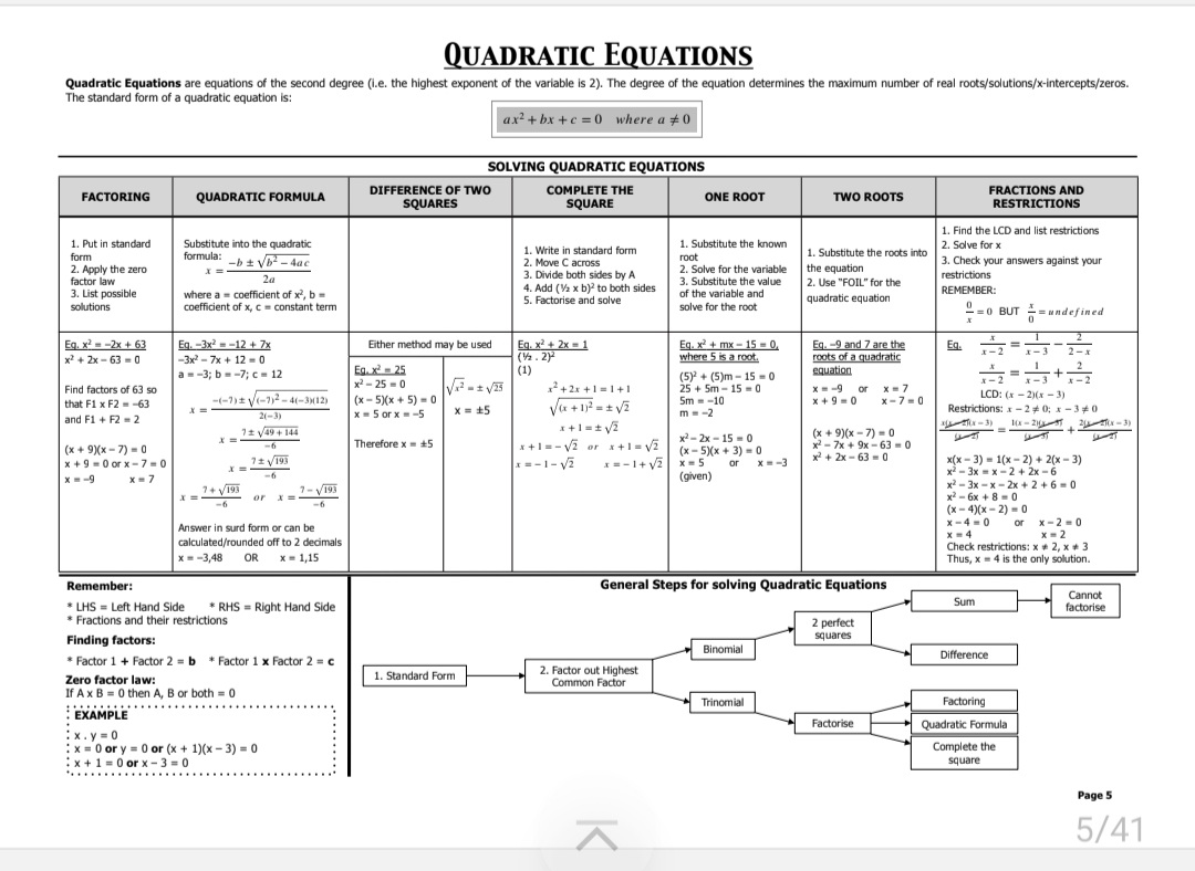 This document covers grade 11 mathematics paper 1 and 2 and covers the following concepts and has questions and answers on them :Nature of Roots ,Quadratic Equations , Functions and Graphs , Exponents and Surds, Number Patterns, Finance, Growth and Decay, Probability, Trigonometry ,Euclidean Geometry, Analytical Geometry ,Statistics .