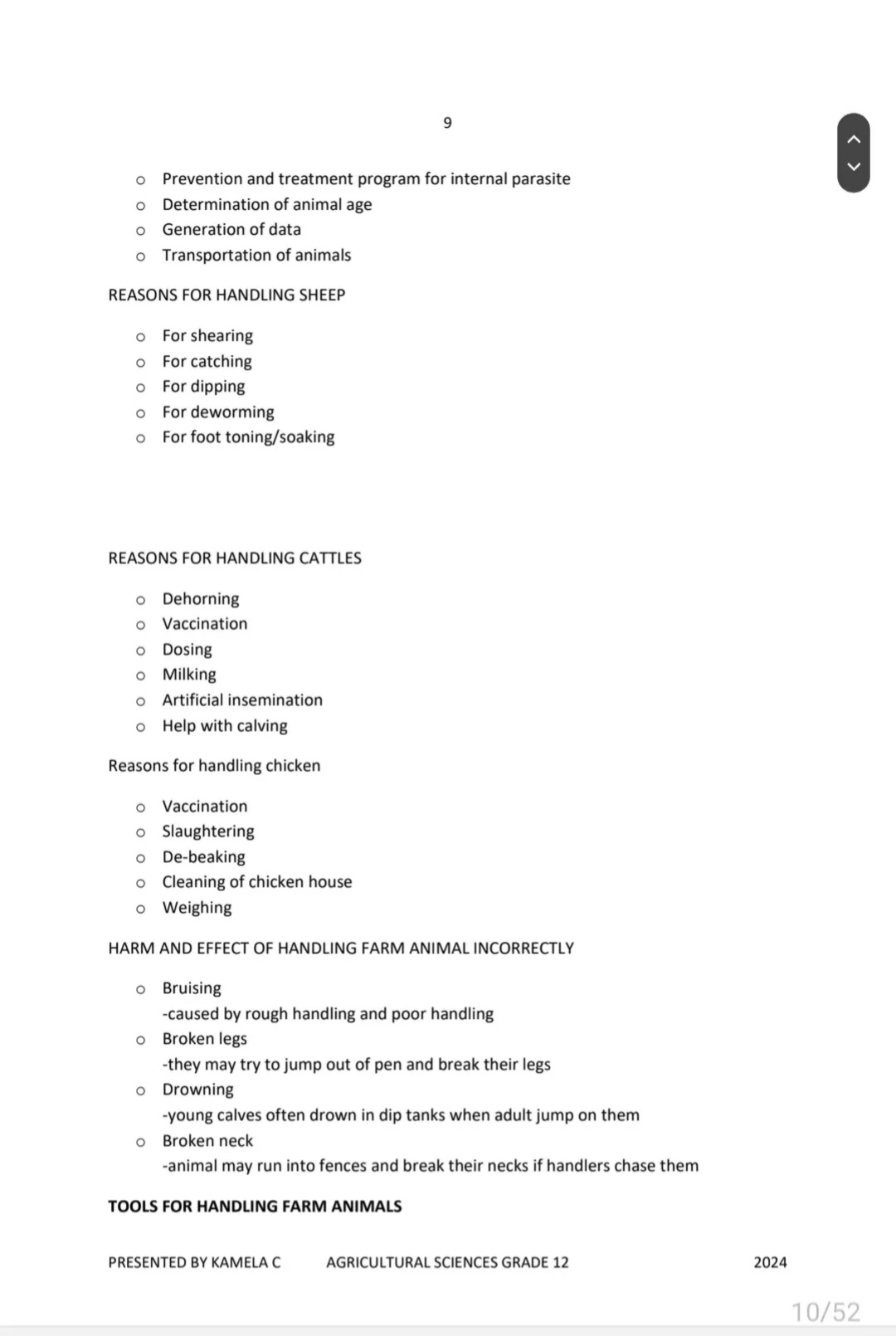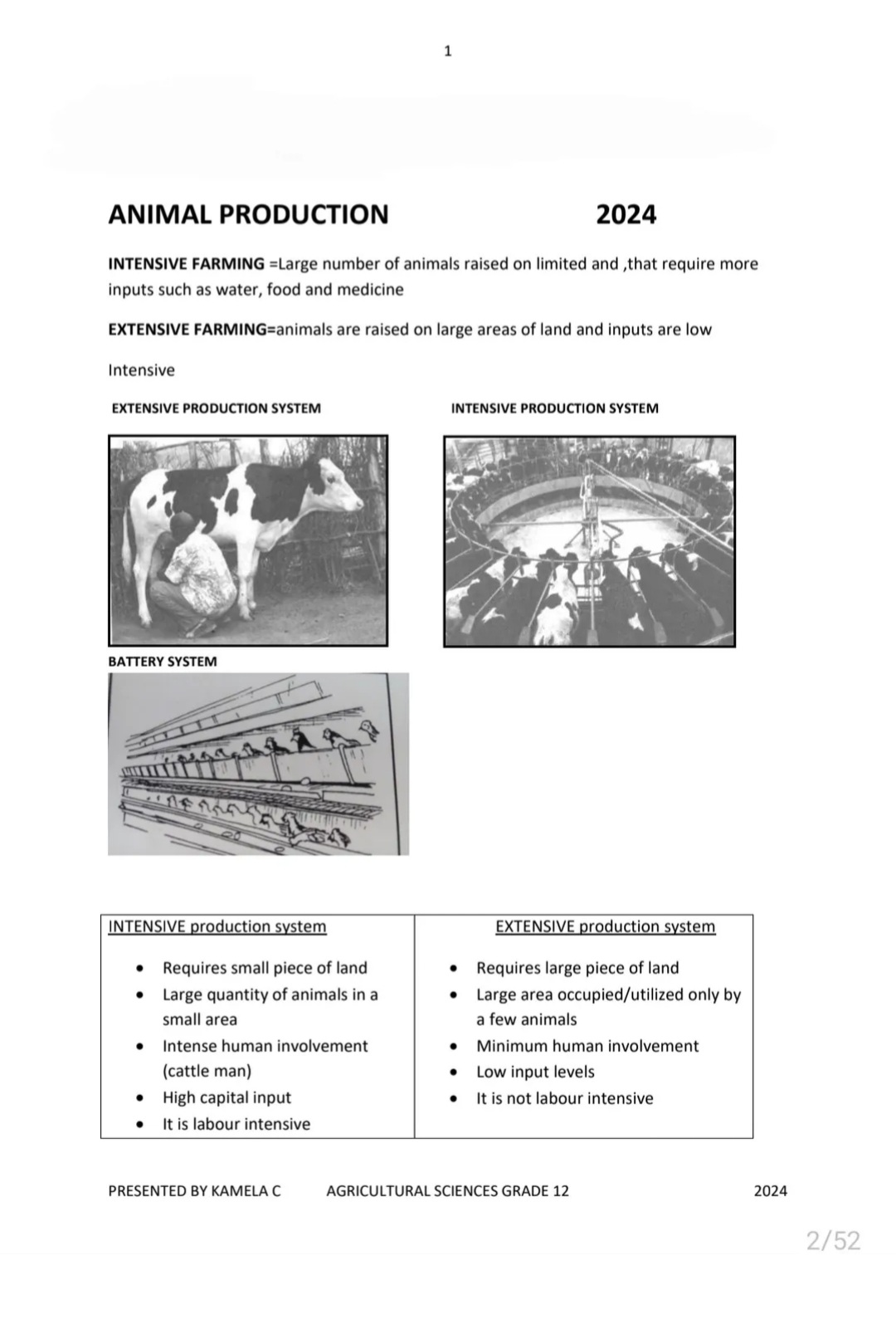 Grade 12 Agricultural Sciences (Animal Production ) Class notes
