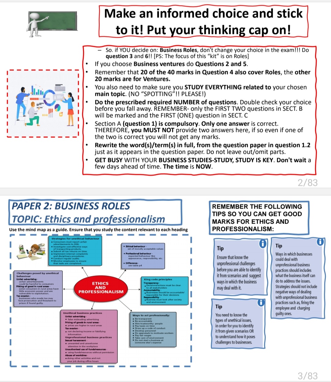 This document has summaries for business studies paper 2 consisting of business roles and business ventures .It explains and makes studying easier for you and we also have paper 1 document . Grade 11s can also use this.