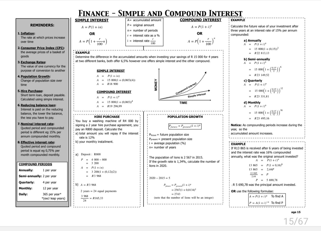This document covers grade 12 mathematics paper 1 and 2 and covers the following concepts and has questions and answers on them :Nature of Roots ,Quadratic Equations ,Exponents and Surds ,Sequences and Series ,Finance, Growth and Decay ,Functions, Graphs and Inverses, Differential Calculus ,Probability ,Euclidean Geometry ,Trigonometry ,Analytical Geometry ,Statistics.