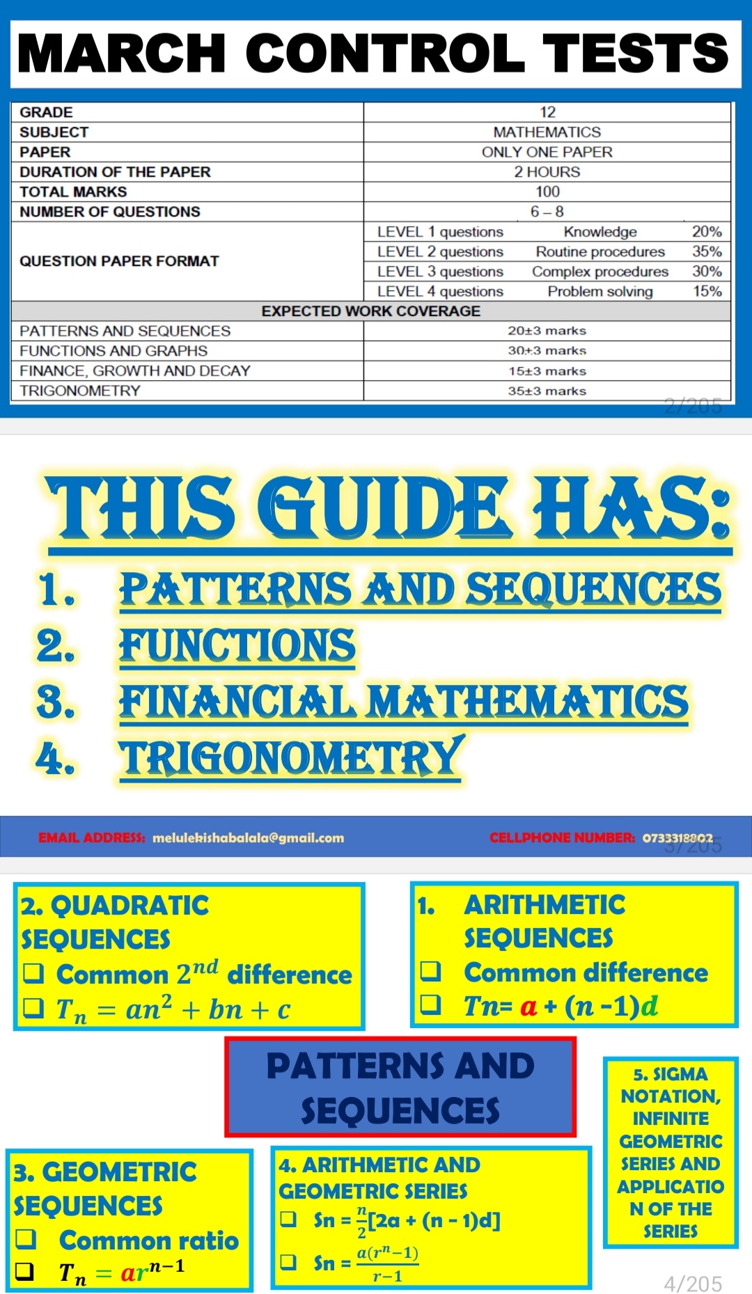 This guide covers all the concepts of term 1 .It has activities and exercises with answers to them and summary notes for the concepts covered in term 1 ,from patterns and sequences , financial mathematics, trigonometry and functions.
