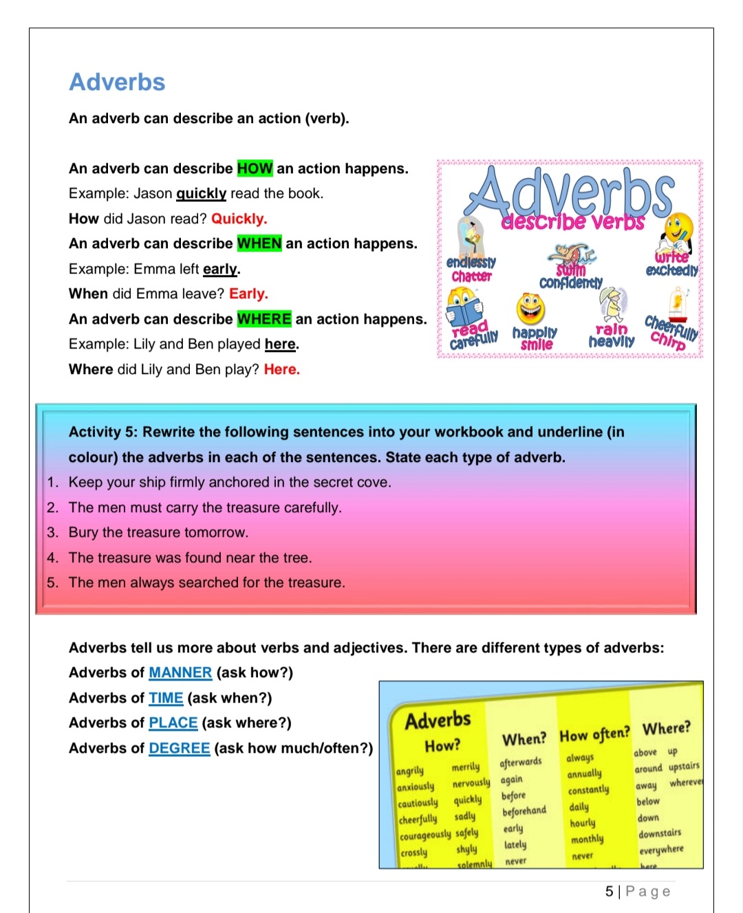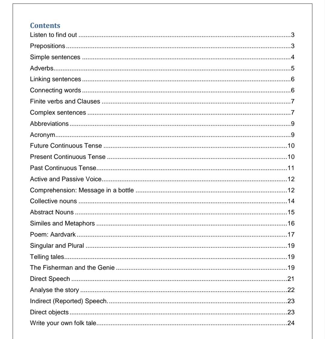This document covers all the content of English in Grade 5 from Term 1 to 2