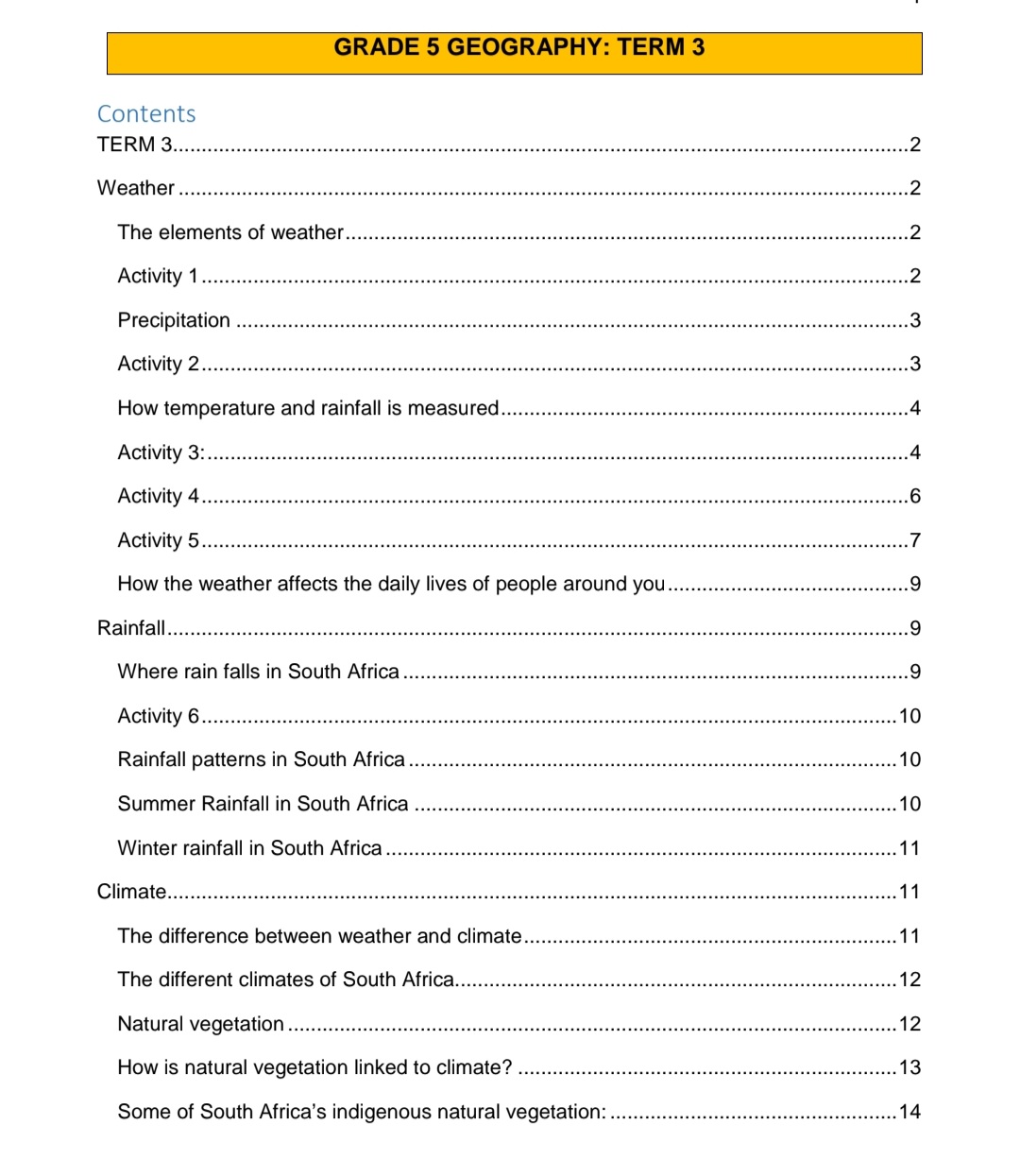 This document covers all the content of Geography in Grade 5 from Term 1 to 4
