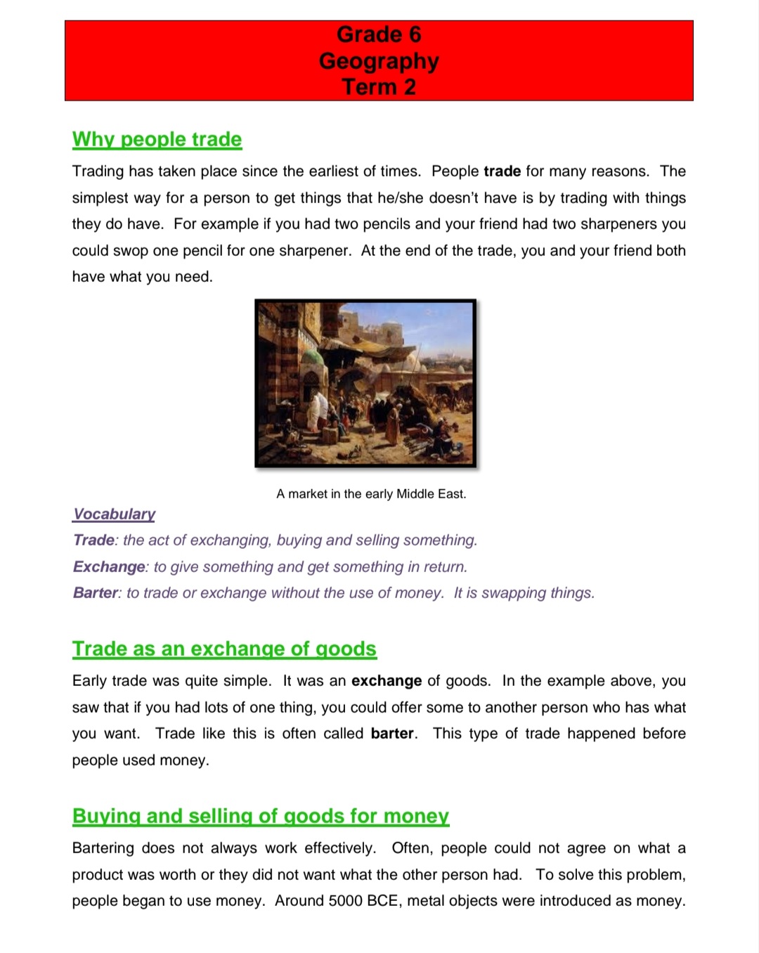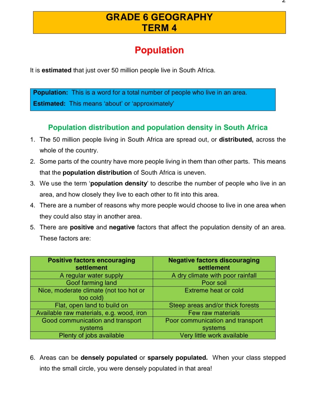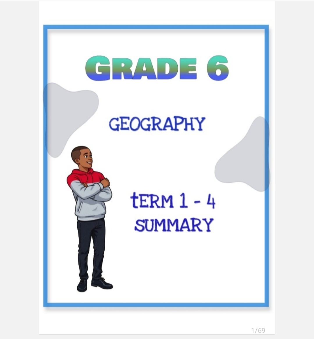 This document is a summary of Grade 6 Geography from Term 1 to term 4 and this will help you understand the subject better and it has activities in between , the activities however do not have answers provided. Please leave a review.