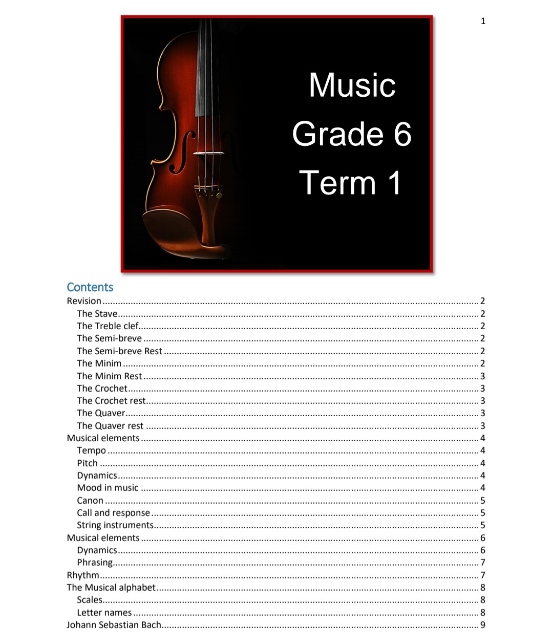 This document covers all the content of Music Literacy in Grade 6 from Term 1 to 4