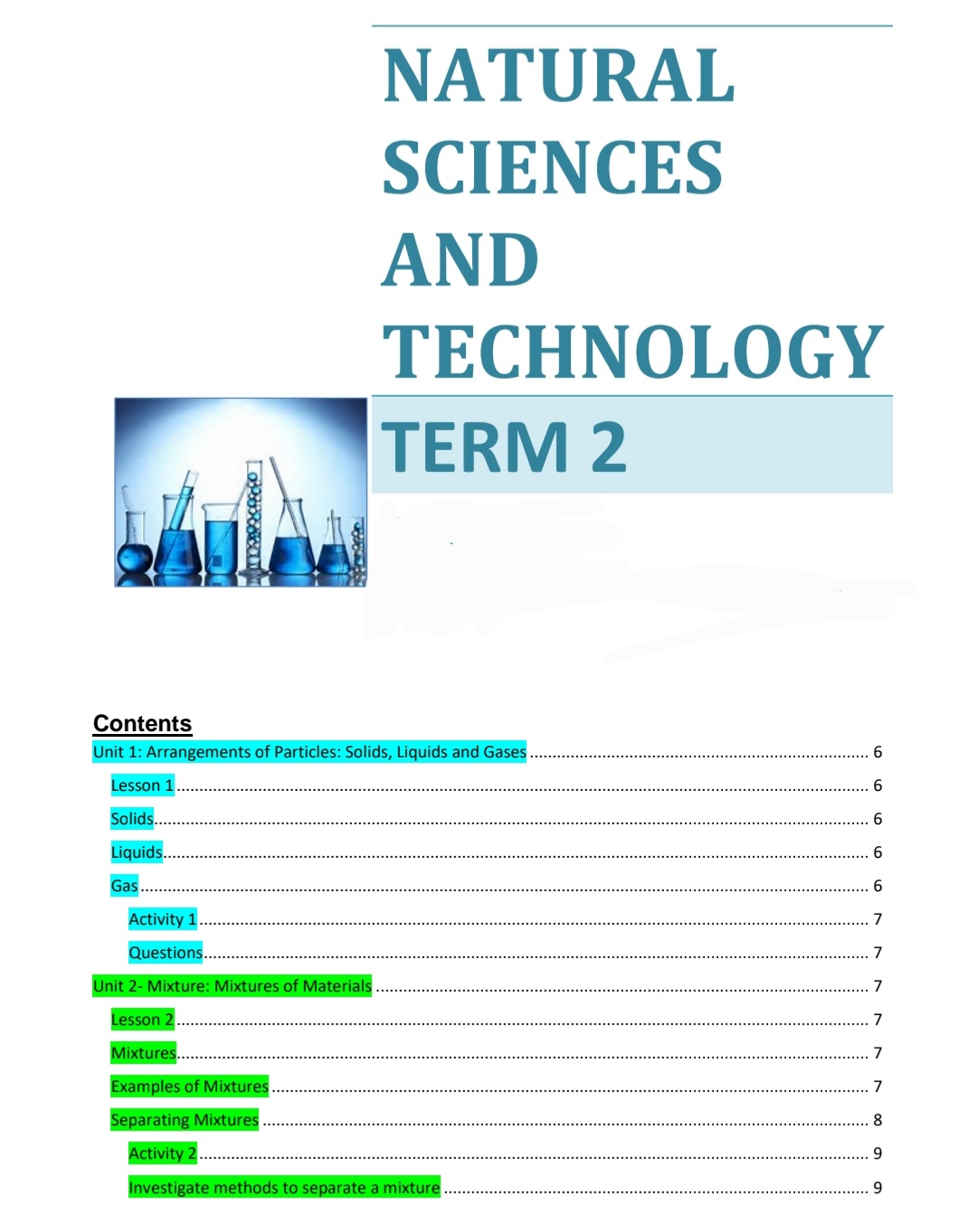 This document covers and summarizes all the content of Natural Science and Technology in grade 6 from term 1,term 2 ,term 3 and term 4.