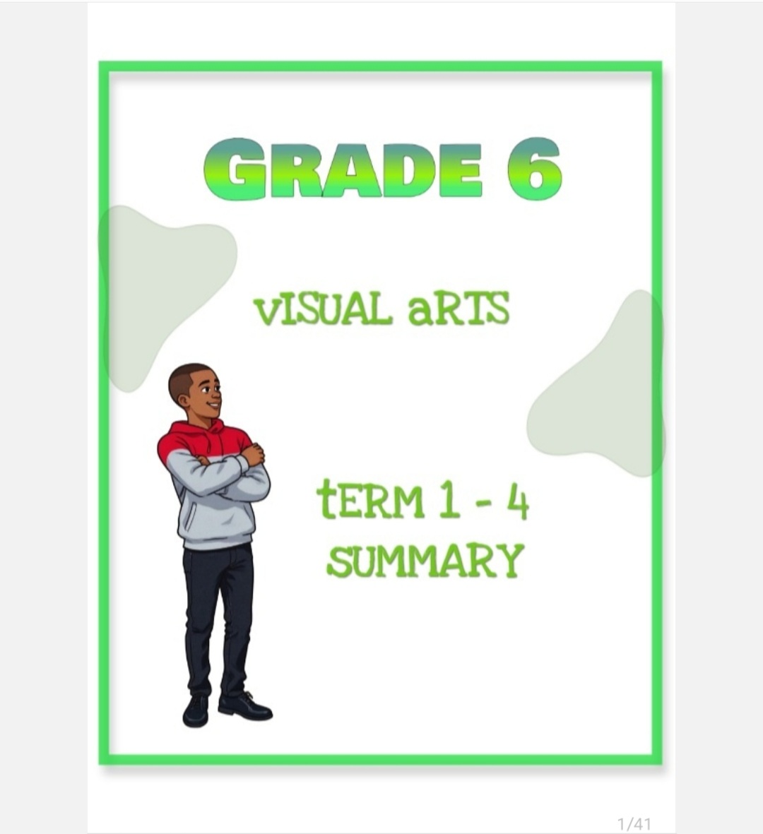 This document has summaries that will assist you in your understanding of Grade 6 Visual Arts and it covers term 1,2 ,3 and 4