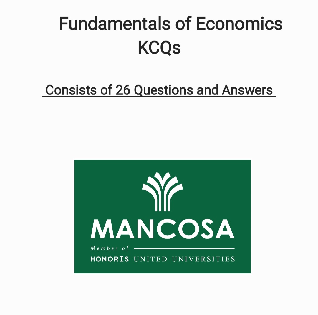 These are 26 multiple choice questions and answers on Fundamentals of economics covering various aspects of the module which will assist you in your formative assessment 1 . Please leave us a review.
